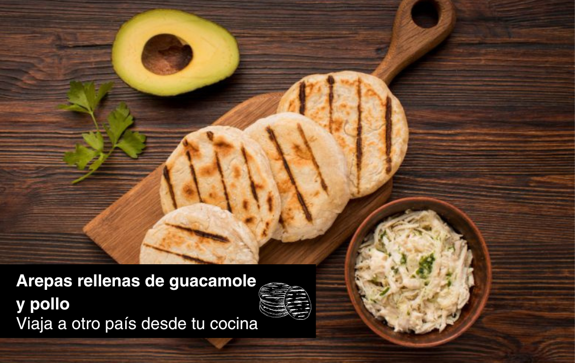 Arepas rellenas de guacamole y pollo
