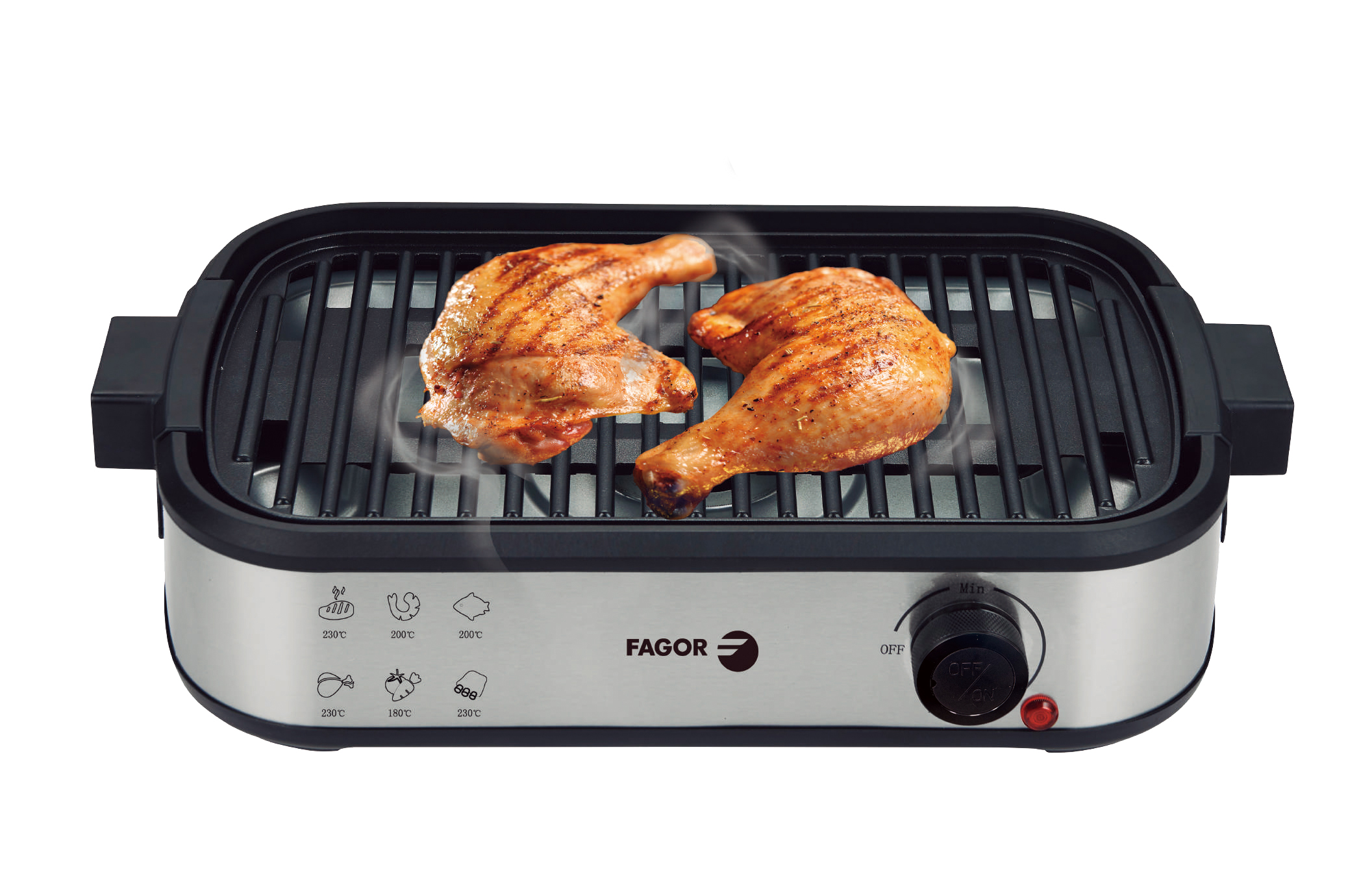 La SmokeLess 1.800 W incorpora un sistema de extracción de humo con filtro de carbón activado, que elimina olores y humos, permitiéndote disfrutar de la experiencia de una parrillada en interiores sin incomodidades. Su sensor de temperatura NTC garantiza un control constante y preciso del calor, evitando sobrecalentamientos y asegurando una cocción uniforme en todo momento.