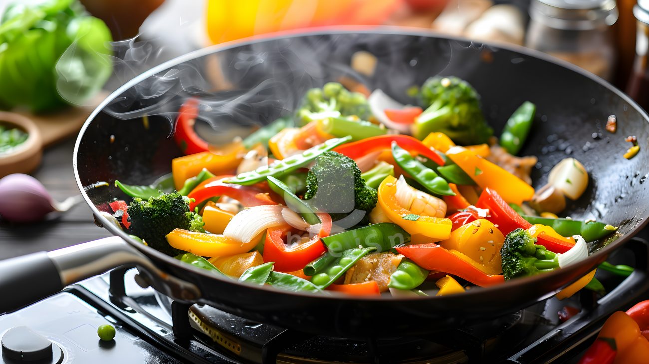 Por último, sirve el salteado caliente, decorado con semillas de sésamo y cilantro fresco.